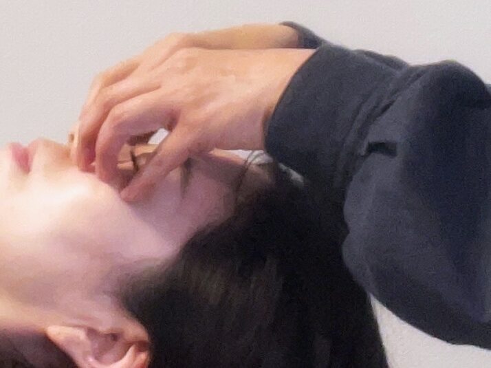 カッサとハンドマッサージで、癒着を剥がし頭部の筋肉を緩め、筋膜の緊張をほぐし、血液とリンパの流れを良くします。