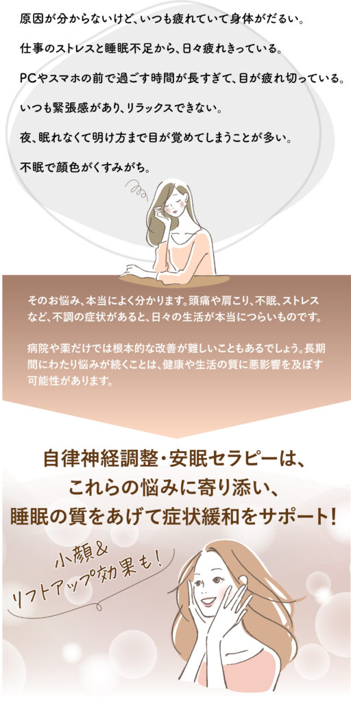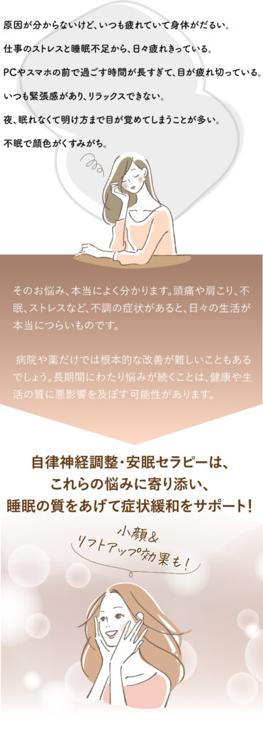 3つの液体の流れを良くすることで自律神経を整え、不眠改善をサポートします。