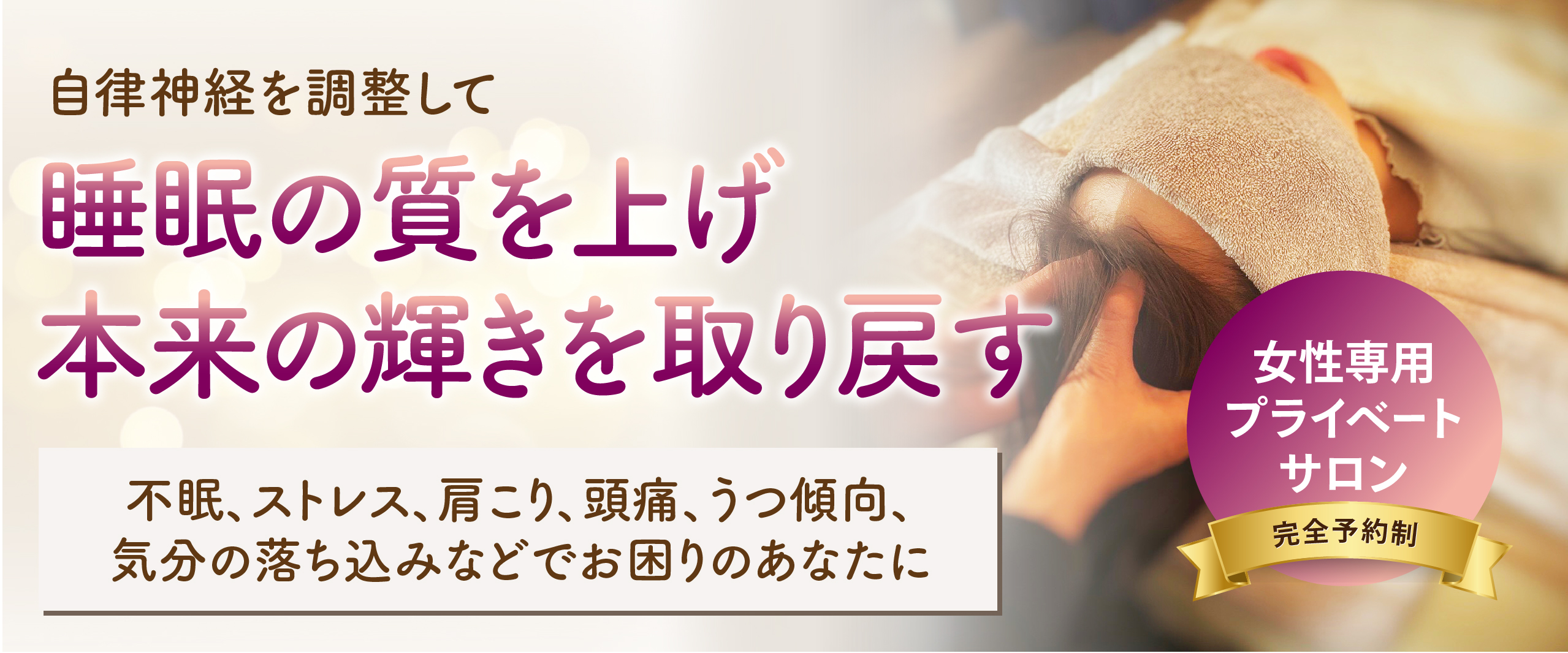 この自律神経調整・安眠セラピーは、頭蓋骨矯正(クラニアルセラピー)とヘッドマッサージを組み合わせて頭部を緩め、3つの液体(脳脊髄液、血液、リンパ液)の流れを潤滑にする施術です。