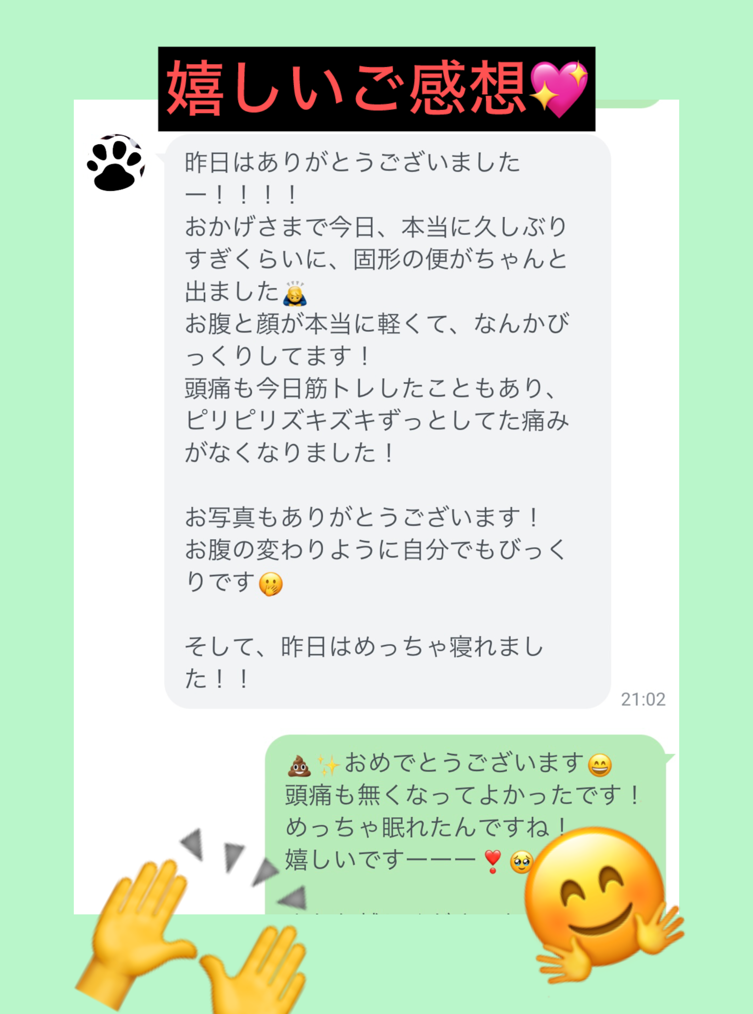 (好転反応により、ボーッとしたりフワフワしたり、眠くなったりする場合があります。)