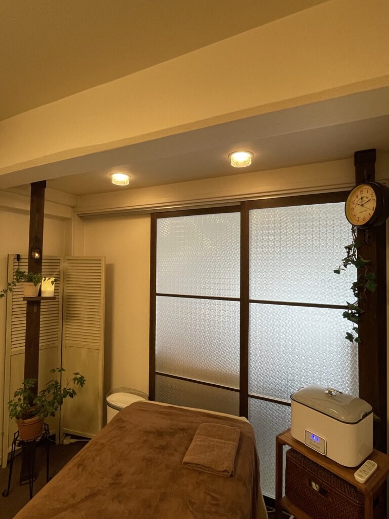 女性専用かつ、完全予約制にしておりますので、プライベート空間で心身ともにゆったりリラックスした空間で日常を忘れて心地よく施術を受けていただけます。